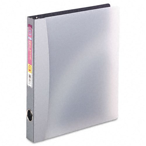 This flexible, lightweight binder is fabricated with stiff covers and engineered to stand upright on a variety of surfaces. Gap FreeTM feature prevents ring misalignment so pages turn smoothly. Grab this binder on the run by reaching for its handy spine-drilled finger hole. Identify the contents of your binder quickly with this unique slide-on, slide off spine label holder. Corner LockTM feature keeps papers from falling out of pockets. Four inside pockets for greater organization. PVC-free. Global Product Type: Binders-Ring Binder; Maximum Capacity Range ("): 1 in; Color(s): Silver Gray; Binder Sheet Size: 11 x 8 1/2.